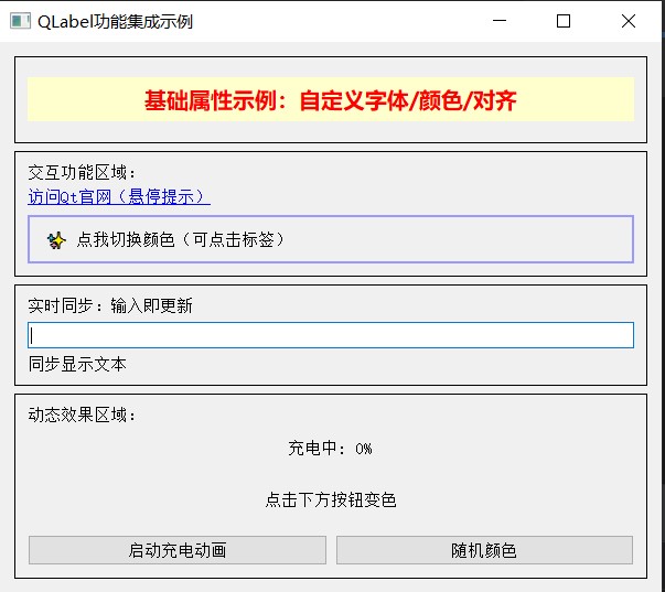 QPushButton)、标签(QLabel)、文本框(QLineEdit)、文本域(QTextEdit)、组合框(QComboBox)、列表(QListWidget)、表格(QTableWidget)等。 - 布局管理器:水平布局(