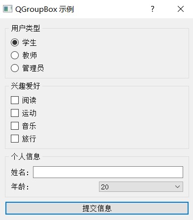QGroupBox使用示例: